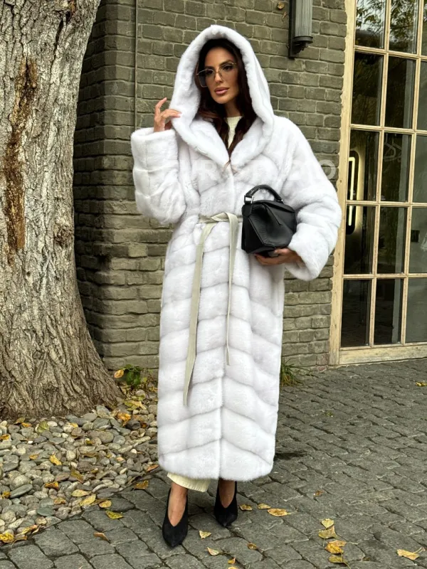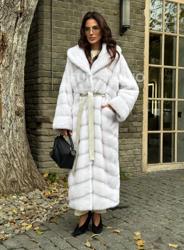 Белая норковая шуба с капюшоном 102342
