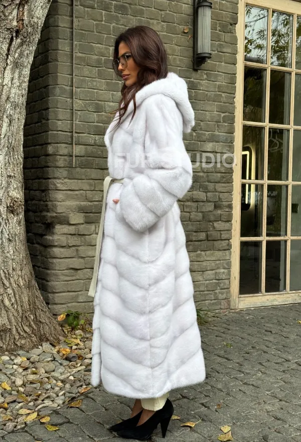 Белая норковая шуба с капюшоном доступна для покупки в нашем шоуруме Furs Studio в . У нас так же есть доставка во все города России. Добавьте немного роскоши в свой гардероб с этой шубой, которая будет служить вам многие годы.