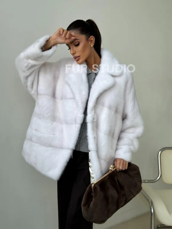 Белый норковый полушубок 102394