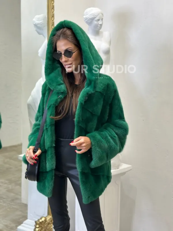 Норковый полушубок с капюшоном - цвет изумруд доступна для покупки в нашем шоуруме Furs Studio в . У нас так же есть доставка во все города России. Добавьте немного роскоши в свой гардероб с этой шубой, которая будет служить вам многие годы.