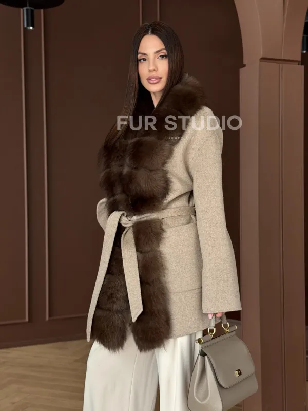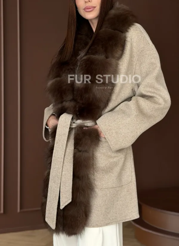 Пальто с отделкой из меха песца 102908