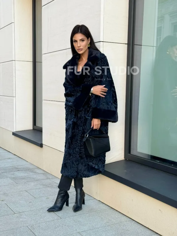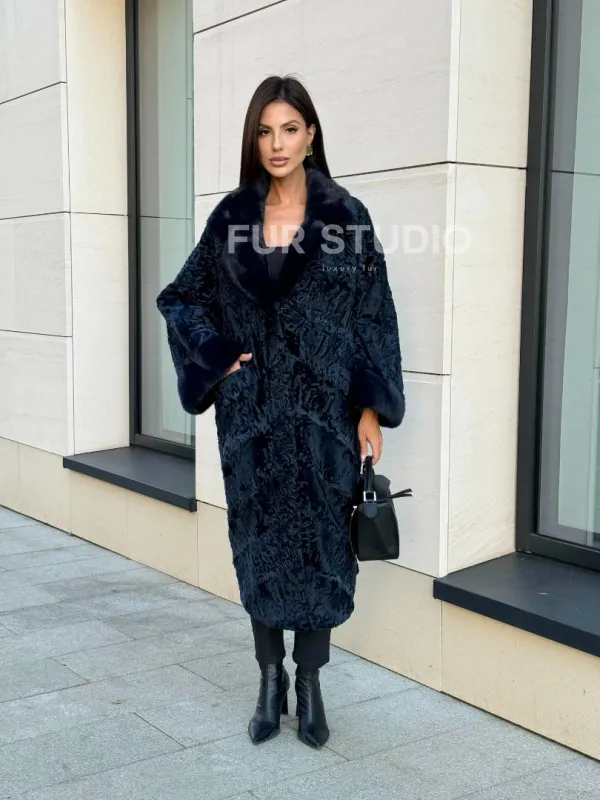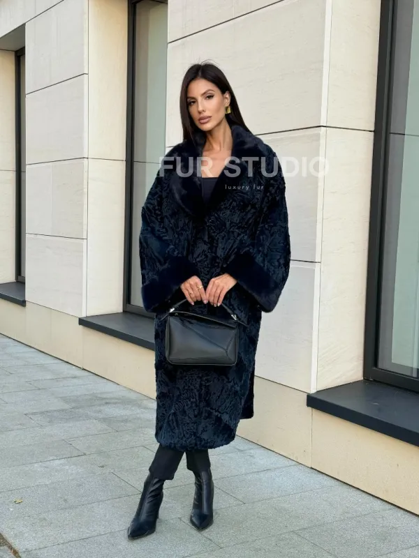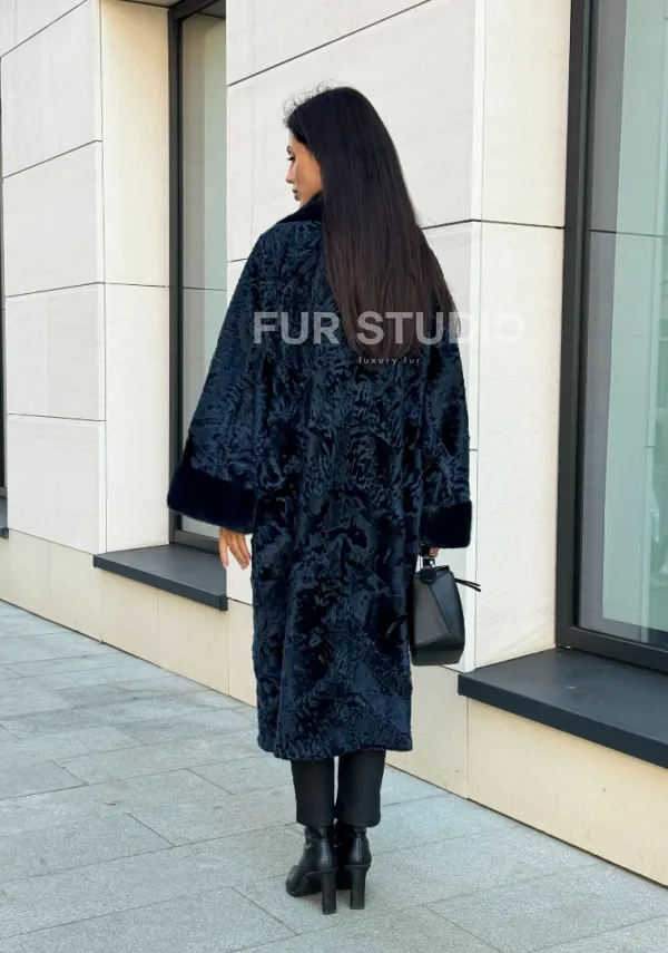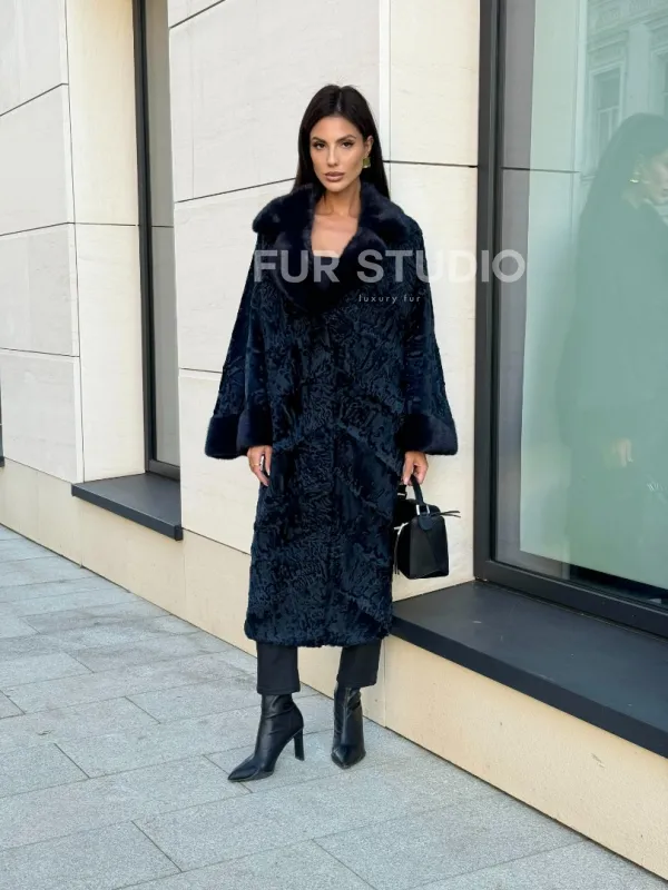 Шуба из каракуля Indigo Blue с отделкой из меха норки, фасон кокон доступна для покупки в нашем шоуруме Furs Studio в . У нас так же есть доставка во все города России. Добавьте немного роскоши в свой гардероб с этой шубой, которая будет служить вам многие годы.