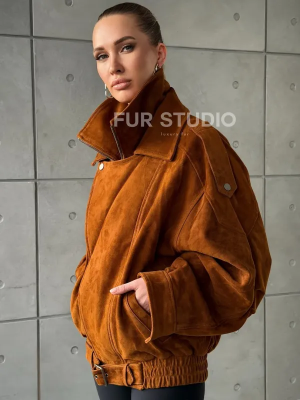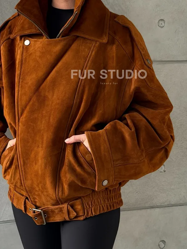 Замшевая куртка-косуха доступна для покупки в нашем шоуруме Furs Studio в , где также предоставляется удобная доставка во все города России.